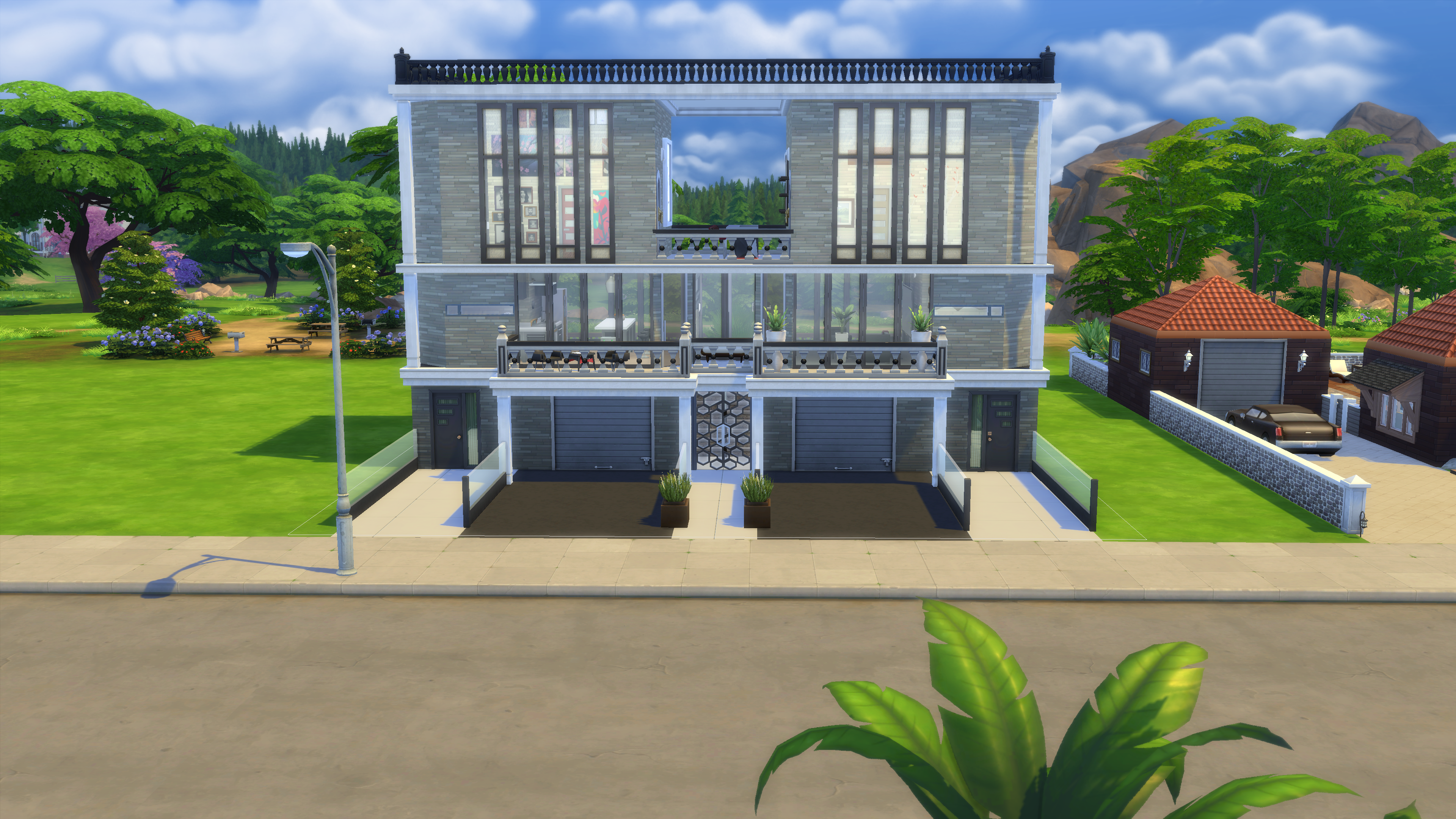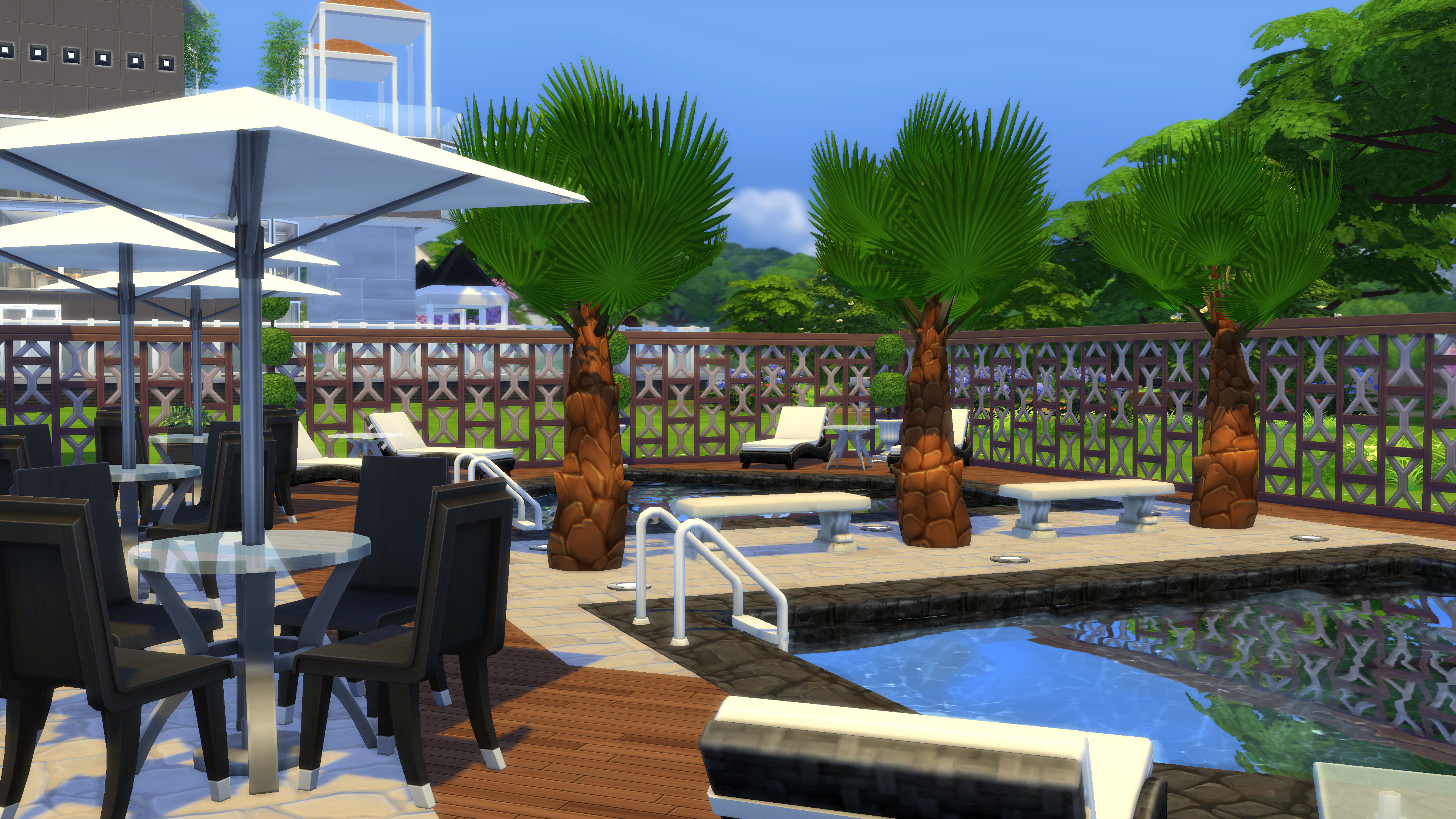 Access to swimmingpools and bbq area through side gates.